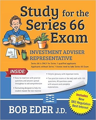 Study for the Series 66 Exam can help you prepare for the Series 66 exam. Includes two 100-question exams with full explanations and answers. Questions inserted throughout text to help the student remember and master key points. Full glossary of terms.